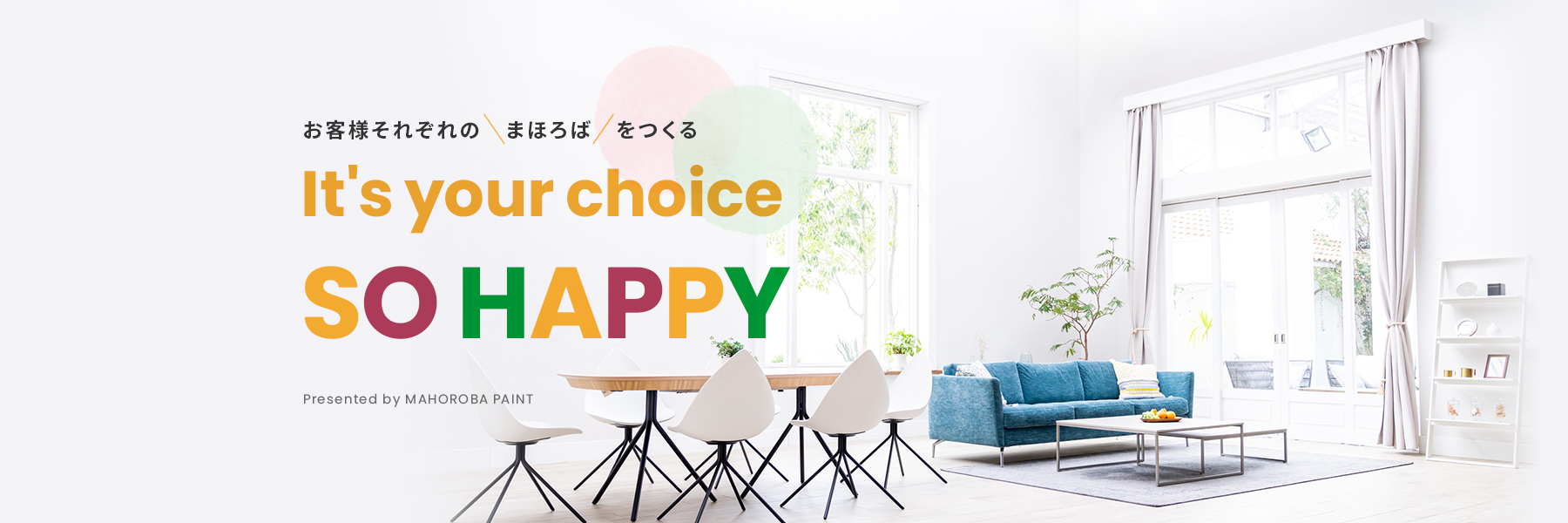 塗装工事を通じ、住まいがお客様にとっての「まほろ場=素晴らしい場所」となるように……そのような想いを、このMAHOROBA PAINT(まほろばぺいんと)にのせています。